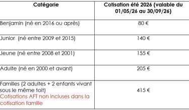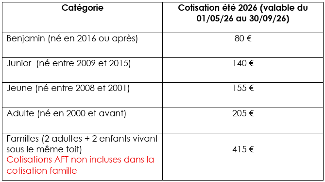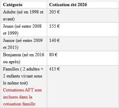 COTISATION ETE 2026 :